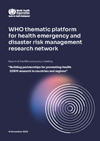 - Kayano R, Chan EY, Murray V, Abrahams J, Barber SL. WHO Thematic Platform for Health Emergency and Disaster Risk Management Research Network (TPRN): Report of the Kobe Expert Meeting. Int J Environ Res Public Health. 2019; 16(7):E1232. doi: 10.3390/ijerph16071232.