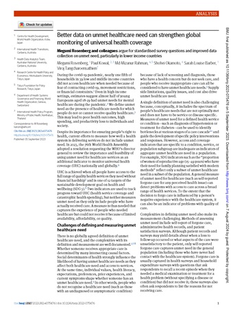 Better data on unmet healthcare need can strengthen global monitoring of universal health coverage