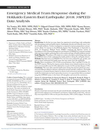 Emergency Medical Team Response during the Hokkaido Eastern Iburi Earthquake 2018: J-SPEED Data Analysis